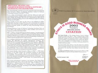 The prestigious Annual Awards for Excellence instituted by PHD Chamber of Commerce and Industry to recognize Indian businesses, entrepreneurs and individuals for their outstanding achievements in selected areas and to promote corporate and individual initiatives in economic, social, educational and cultural areas were presented by Abdul Kalam, President of India at the 100th AGM of PHDCCI in New Delhi on 21-December 2005.